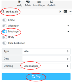 English version below >> Kære studerende Du får denne mail, fordi vi kan se, at du inden for det seneste år har modtaget mail på en mailadresse, der slutter med @stud.au.dk. Du kan derfor stadig risikere at modtage mails sendt til denne adresse i din gamle post.au.dk-mailboks - fx hvis du har brugt din @stud.au.dk-mail til at tilmelde dig nyhedsbreve, abonnementstjenester og lign. Din @stud.au.dk-mailadresse er koblet op på din gamle post.au.dk-mail, men de mails, du modtager på @stud.au.dk-adressen, sendes ikke videre til din nye mailboks i Microsoft Exchange (Outlook). De vil derfor ligge i din post.au.dk-mailboks. Du bør derfor tjekke, om du har nye/ulæste mails liggende i post.au.dk. Det kan du gøre indtil den 1. november, hvor post.au.dk og lukker. Efter denne dato vil du derfor heller ikke kunne benytte din @stud.au.dk-mailadresse. Husk derfor også at ændre mailen hos eventuelle tjenester, hvor du har tilknyttet din @stud.au.dk mailadresse. Se her, hvordan du finder mails sendt til @stud.au.dk. 1. Tryk på pil-ned for at vælge avancerede søgekriterier øverst i webmailens forside: [Et billede, der indeholder tekst, Font/skrifttype, linje/række, skærmbillede AI-genereret indhold kan være ukorrekt.] 1. I vinduet, der popper op, skal du søge på stud.au.dk i modtagerfeltet, i ”alle mapper” og klikke ”søg”. [Et billede, der indeholder tekst, Font/skrifttype, nummer/tal, skærmbillede AI-genereret indhold kan være ukorrekt.]A Hvis du har spørgsmål, er du velkommen til at kontakte din lokale IT-support<https://studerende.au.dk/it-support/kontakt>. Med venlig hilsen AU IT [cid:image001.png@01DBE5B7.121AE550] ________________________________ Dear student, We’re writing to you because we can see that you have received email correspondence to an email address that ends with @stud.au.dk within the past year. Emails sent to this address risk ending up in your old post.au.dk mailbox – for example, newsletters or subscriptions that you signed up to with your @stud.au.dk email address. Your @stud.au.dk address is linked to your old post.au.dk mailbox, but emails you receive to your @stud.au.dk address are not forwarded to your new mailbox in Microsoft Exchange (Outlook). They will stay in your post.au.dk mailbox. So it’s important you check whether you have new/unread emails in your post.au.dk mailbox. You can do this until 1 November, when post.au.dk will no longer be accessible. After this date you will no longer be able to use your @stud.au.dk-email either. This means that you must also remember to update your email address with any services that still use your @stud.au.dk address. Here is a guide to finding any emails sent to your @stud.au.dk address. 1. Click the down arrow to select advanced search criteria at the top of the webmail home page: [Et billede, der indeholder tekst, Font/skrifttype, linje/række, skærmbillede AI-genereret indhold kan være ukorrekt.] 1. In the window that appears, search for stud.au.dk in the Recipient field in All folders and then click Search. [Et billede, der indeholder tekst, Font/skrifttype, nummer/tal, skærmbillede AI-genereret indhold kan være ukorrekt.] If you have any questions, please feel free to contact your local IT support<https://studerende.au.dk/it-support/kontakt>. Kind regards, AU IT [cid:image002.png@01DBE5B7.121AE550]